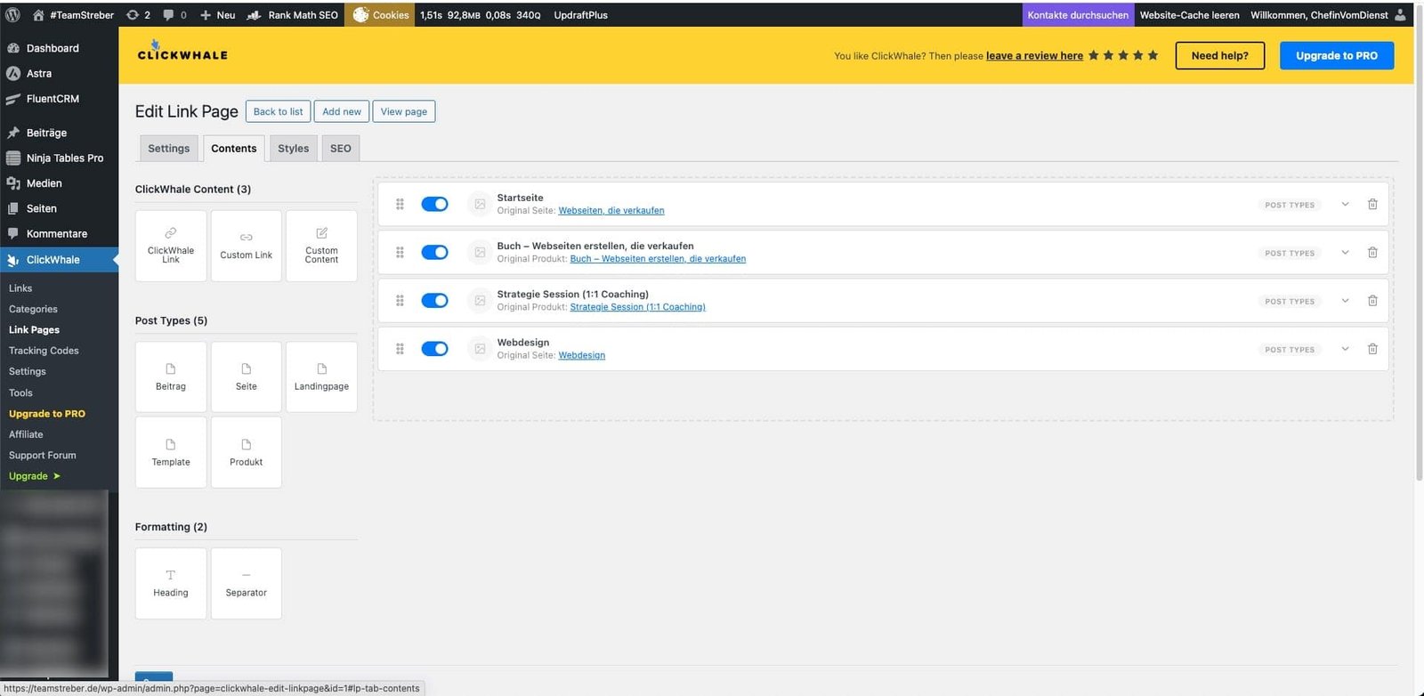 In diesem Artikel zeige ich dir, wie du ClickWhale* installierst, deine Links aus ThirstyAffiliates oder Linktree importierst und wie du das Plugin nutzen kannst, um die Verkäufe auf deiner Webseite zu steigern.