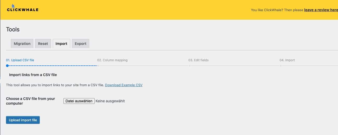 Damit kannst du deinen ClickWhale* Links eine Vorsilbe geben. Das ist dann klasse, wenn du wirklich nur Affiliate-Links über Clickwhale einstellst. Dann könnte das Prefix “Affiliate” sein.