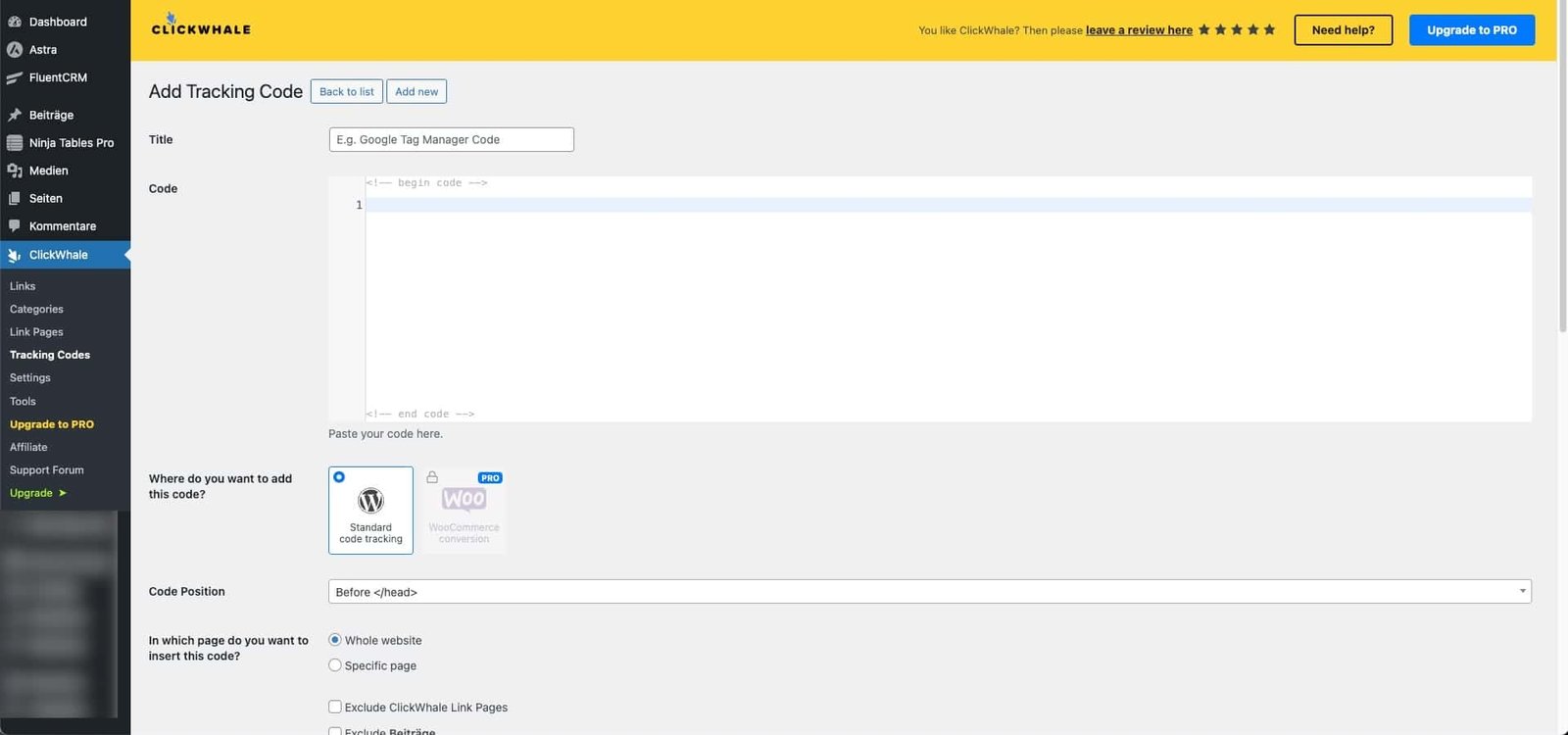 Wenn du einfach nur eine kostenlose und DSGVO-konforme Linktree Alternative kostenlos suchst, dann reicht dir die kostenlose Version. Damit kannst du dann auch noch Tracking-Codes direkt in WordPress organisieren.