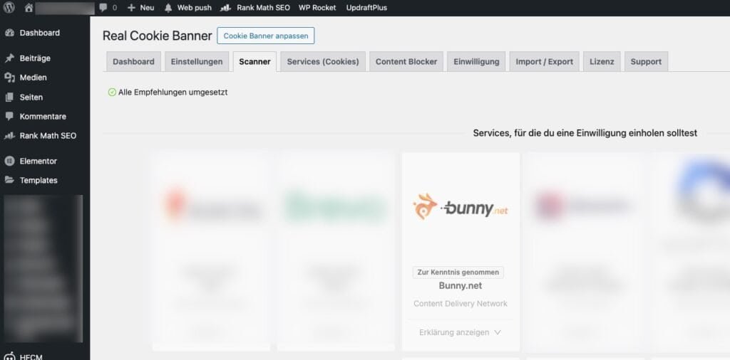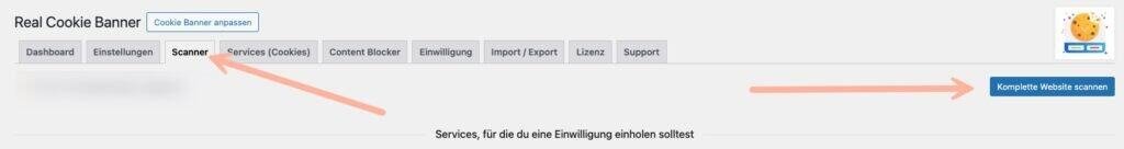 Jetzt kommt der smarte Teil: Gehe in WordPress zu Real Cookie Banner → Scanner und lass ihn über deine Seite laufen.
