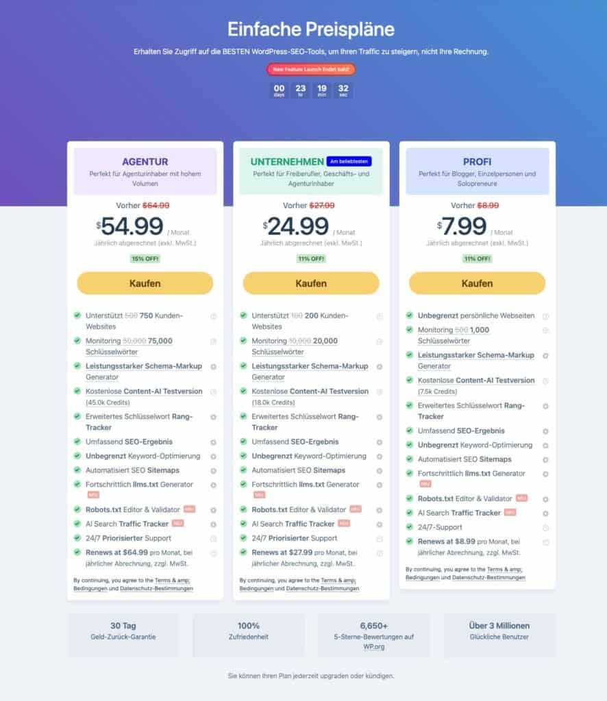 Kostenlose und Premium-Option verfügbar: Rank Math bietet sowohl eine kostenlose als auch eine Premium-Version an. Du kannst also mit der kostenlosen Version starten und bei Bedarf aufbuchen.